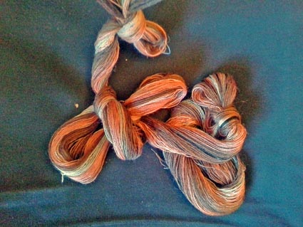En chaîne: fil du commerce, teinté végétal chez moi sauf le noir qui est acheté tel quel