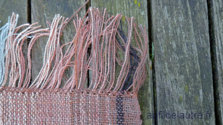 J'ai ourdi en direct, avec deux fois les fils par fente (pardon pour le flou et les couleurs, ce sont des photos pour usage interne, pour me rappeler - le soir au smartphone sans flash aheum)