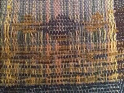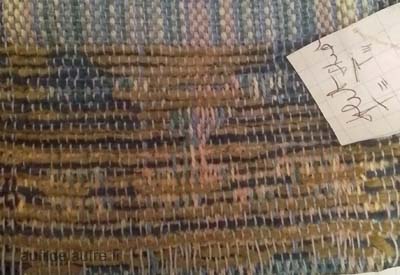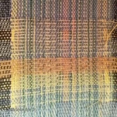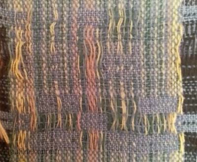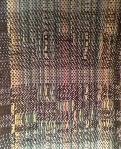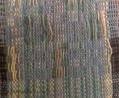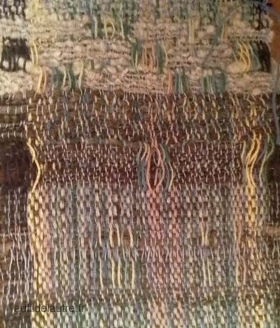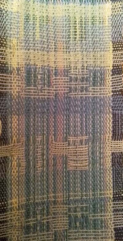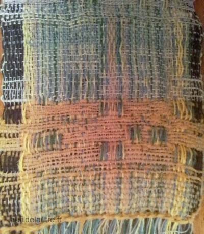 Le résultat me plaît beaucoup par sa texture et sa structure, dense mais souple (je ne sais comment la qualifier). et surtout par la possibilité d'improviser, de peindre en tissant. Je retiens la répartition de blocs par un petit bout de papier (photo 1), qui me sert de mémoire.