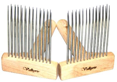"Peigner, c'est comme un peigne à cheveux, carder c'est comme la brosse, en schématisant très fort. D'un côté, avec le cardage, tu laisse tout l'air dans les fibres qui sont mise dans tous les sens, et au filage tu conserve cet air. D'un autre côté avec le peignage tu vas retirer toutes les fibres courtes et paralléliser les fibres longues qui restent. Au filage tu va accentuer cet aspect. Le résultat sera deux fils radicalement différents. Le fil cardé sera léger, moelleux et peu résistant à l'usure. Le fil peigné sera brillant, solide mais peu doux. "