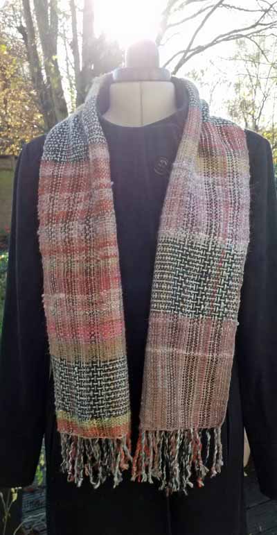 L'écharpe fait 30 cm de large et 165cm de long, franges comprises - ces dernières sont torsadées.