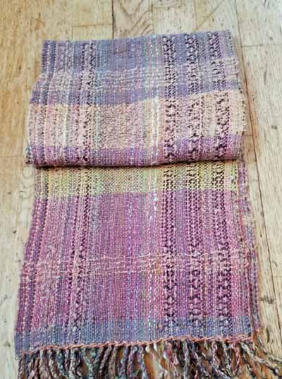 2.12.21 Toujours dans le thème des filés mains à intégrer dans des projets structurés, je garde l'idée de bandes verticales en grain d'orge pour rythmer le tissu, sans les marquer aussi franchement que dans le projet précédent, mais en marchant tout le tissu de la même manière. Sans rupture de rythme.