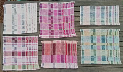 Les torchons sont carrés car sur 4m de chaîne, je voudrais faire de nombreux essais. Et puis, pourquoi toujours des torchons de 40/60cm? En outre, s'ils ne finissent pas en torchons, ces tissus seront peut être intégrés dans un vêtement. n