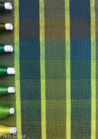 Je l'utilise de préférence pour la trame, jusqu'ici. Le jeu des couleurs est moins choquant qu'en chaîne, comme on le voit ci-dessous, dans les explications de Tien Chu - ses exposés sont d'une limpidité telle sur la couleur comme j'en ai lus peu sur le net.