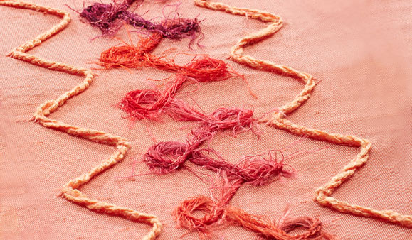 J'ai trouvé sur craftsy le travail de Carol Waugh: stupendous stitching (coutures magnifiques, voir vidéo d'intro où elle "couche" des laines et fils spéciaux en les cousant). Une autre vidéo de la dame: Couching Yarns & Cord onto Fabric
