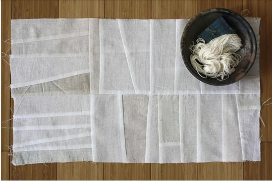 L 'avantage du pojagi sur le patchwork classique: aérien, visible deux côtés du panneau. On joue de l'effet vitrail des superpositions de coutures.