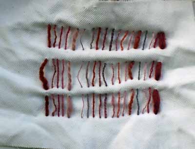 Comment ranger mes mille fils de laine teints en végétal? J'ai testé une quinzaine de laines différentes, avec quelques unes des couleurs que j'ai glanées.