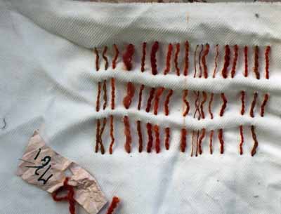 J'ai essayé de les coller par les bouts, tirés bien droits, dans un carnet. Facile pour écrire le commentaire, certes, mais ça tue la laine. Elle ne dit plus rien.