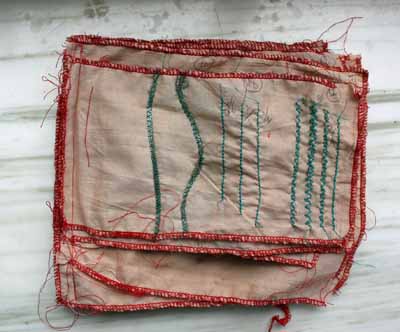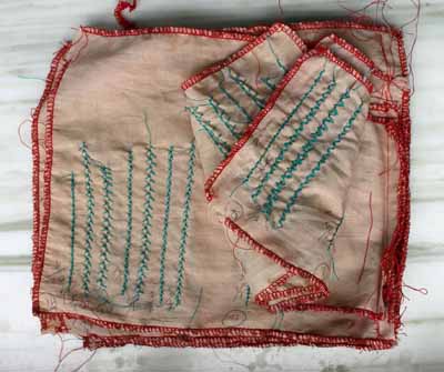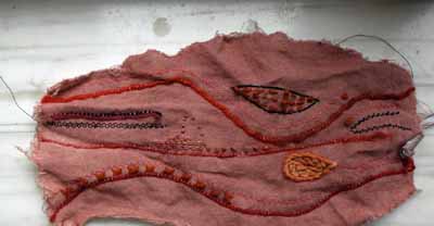 Après avoir suivi le cours en vidéo de Carol Ann Waugh "Stupendous stitching", premiers essais avec une machine très rudimentaire, non prévue pour la broderie. ça me suffit.