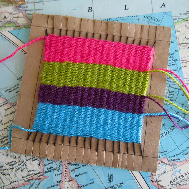 J'ai acheté un petit métier à tisser d'enfant Eichhorn, après m'être fait les mains sur un bout de carton lors du premier stage chez Ecocentre, avec Chantal.