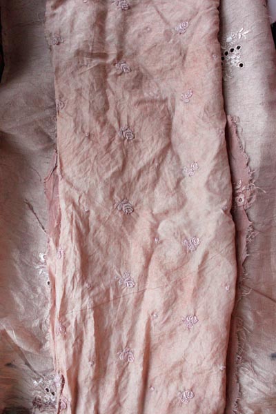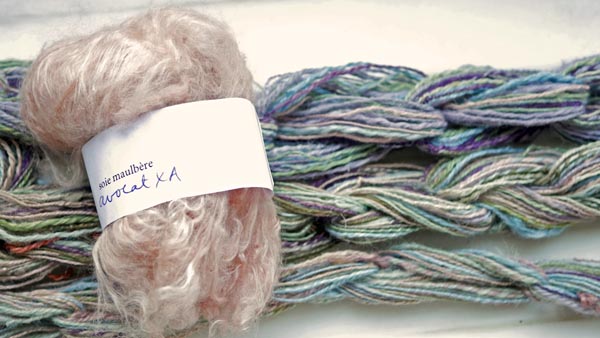 mars 2019. Je viens de retrouver un bout de soie maulbère, teint en macération alcaline en été 2018.