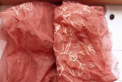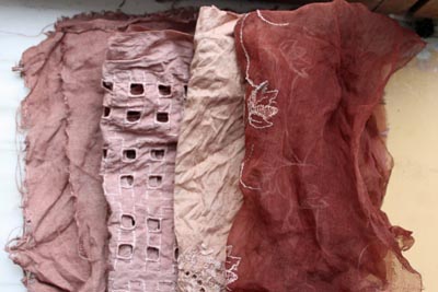 Gauche: coton. Droite: sur soies Lamouret, avec post trempage en bain de marc de café.