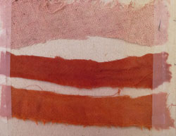 Echantillons du haut: cochenille en second monobain acide mais à froid. A ne pas reproduire. Trop atténués.