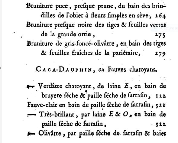 Petit intermède historique: pour voir les noms des couleurs antan, cliquer sur l'image ci-dessous, extraite d'un ancien livre téléchargé du net (de Dambourney):