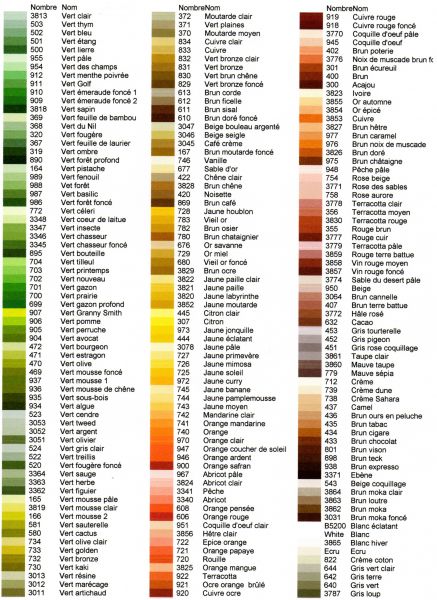 Mettons-nous d'accord pour une terminologie sur ce blog, tout en se rappelant que les écrans ne sont pas tous calibrés pareil: j'utiliserai ici le nuancier des fils DMC