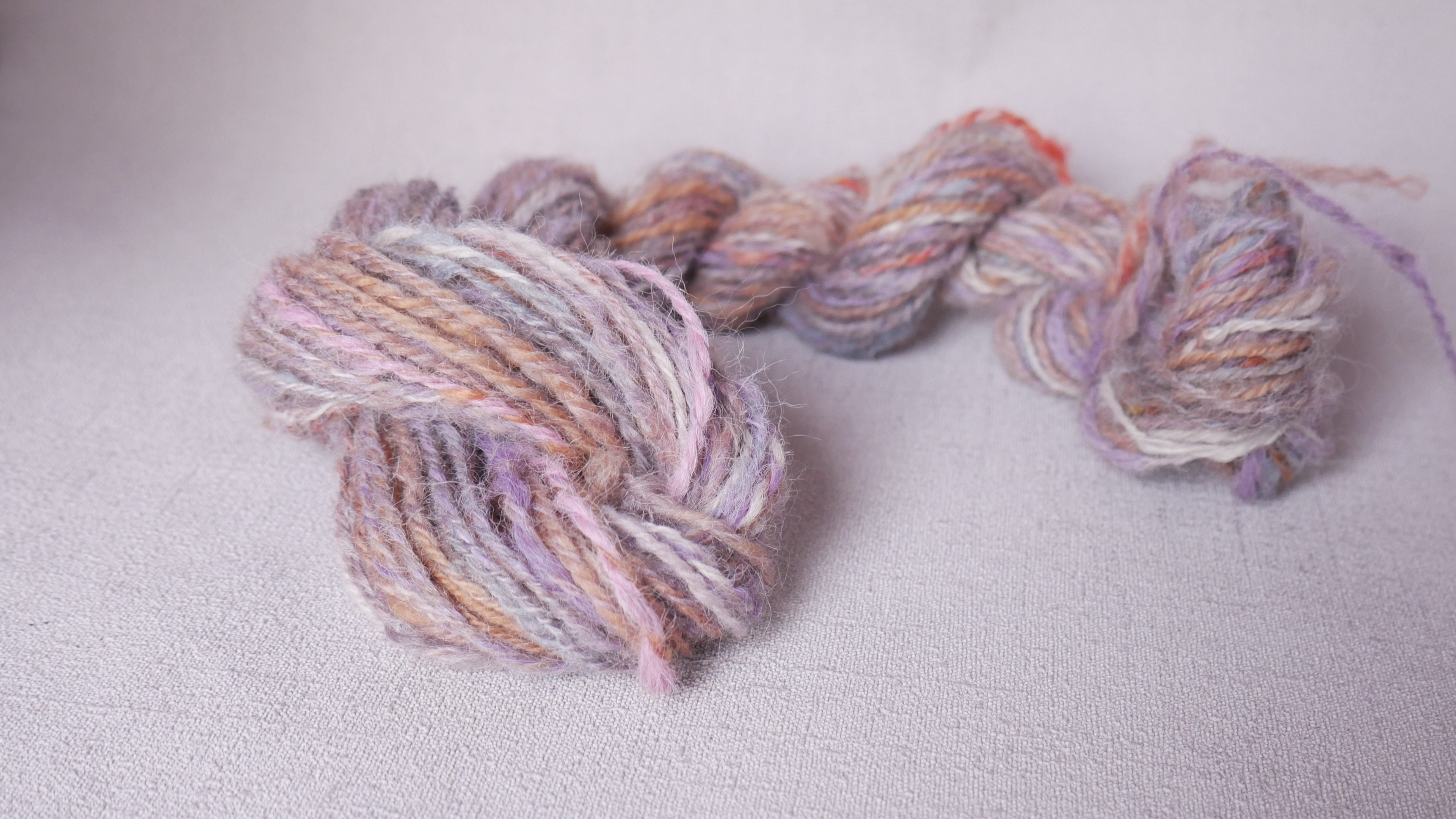 9.10.18 J'ai cardé mes résultats de teinture en diverses toisons et rubans, pour filer de l'arc-en-ciel comme ce qui suit. Le contenu du billet est repris dans le billet "Un écheveau ou une chaîne en multicolore: teindre ou filer"