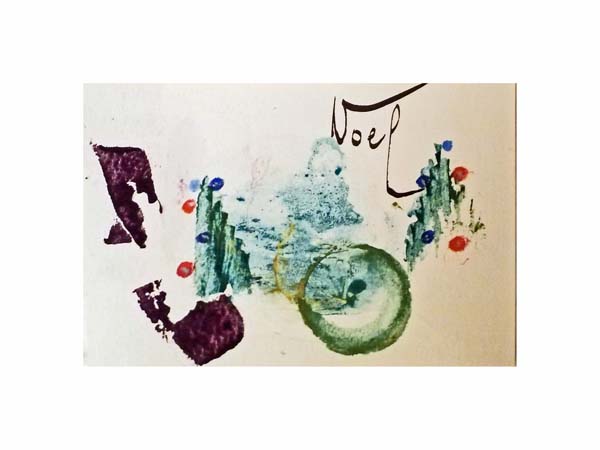 23.12 Je partage ici mes essais de carte de voeux réalisées en aquarelles maison, grâce au coffret que vend pour l'instant notre génie de la chimie verte, Michel Garcia. Et que j'ai reçu cette semaine.