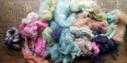 ici en alpaga noir/ merinos blanc/ chamelon blond, teint ensuite en cochenille: