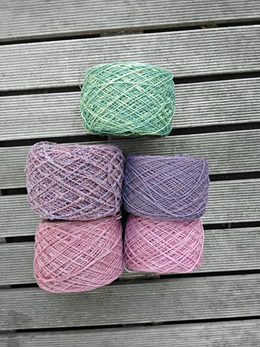 Il me manque des variétés de ton dans la série des bouclettes de coton, pour torchons. Faits cette semaine pervenche, mauve, roserouge, grenat: