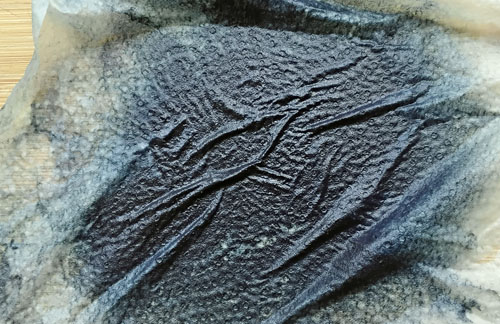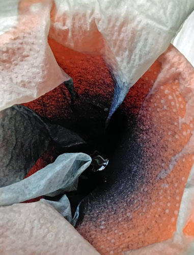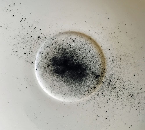 8. Je récupère l'indigo quand il est sec (ici de l'ordre du picogramme, c'était pour la démo, sur un fond de verre de cuve)
