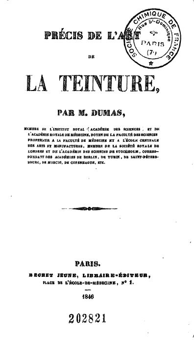 Précis de l'art de la teinture, par M. Dumas,1846. Source gallica.bnf.fr / Université de Paris Sud 11