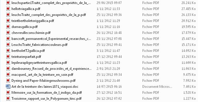 En 2014-2015, j'ai relu beaucoup de livres anciens à télécharger de Googlebooks ou de Gallica, non pas pour refaire le travail des récents auteurs (Cardon & Cie ou les stages de Michel Garcia) mais parce que je les relis avec un autre œil : comment glaner des produits proches ; comment macérer, sans chaleur et sans excès d’eau, mais sur la durée (Slow dye, n'est ce pas?). Que faisaient nos Aïeux ? Dans les années 70-80 le mouvement tinctorial était animé d’une volonté d’efficacité; aujourd’hui, on sent plus un vent de retour aux sources doublé d’un désir d’éconologie multifacettes avec une aile locavore.