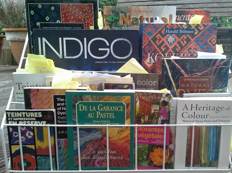 J’ai chez moi, pour l'instant, les livres suivants sur les teintures naturelles . Je les cite dans l'ordre où je les feuillette régulièrement. Bientôt, une série seront en vente en seconde main sur la boutique de ma société, Aladdin. Je n'ai pas acheté le livre récent (2023) de Catharine Ellis et Boutrup, mais je m'y réfererai dans les résumés. Je l'intègre donc.