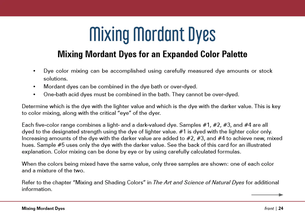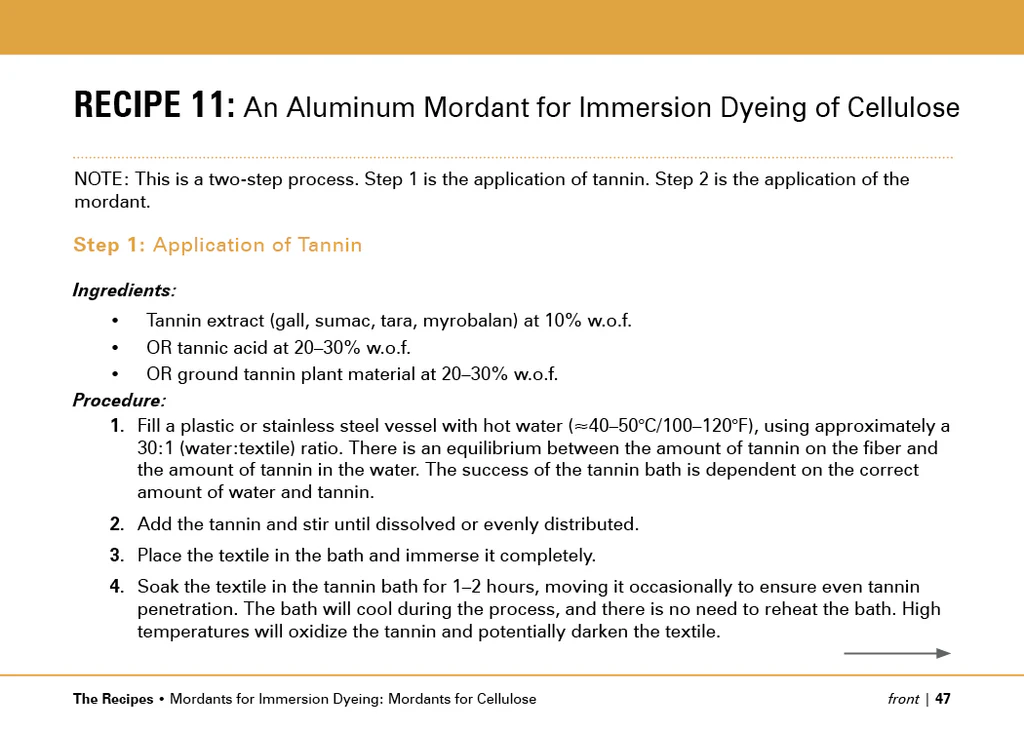 En complément de leur livre L'art et la science des teintures naturelles (en anglais), Catharine Ellis et Joy Boutrup ont publié une série de fiches de recettes