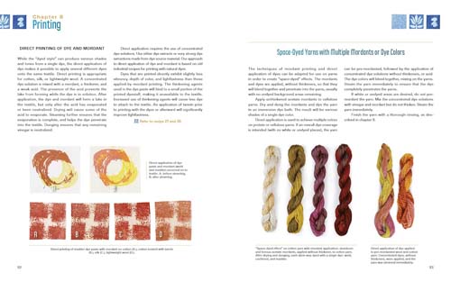 Des photos de plus de 450 échantillons montrent les résultats de tests réels. Des informations détaillées couvrent tous les aspects de la teinture naturelle, y compris la théorie, les fibres, les mordants, les colorants, l'impression, les cuves d'indigo organique, la finition et l'évaluation de la solidité de la teinture. Les techniques spéciales d'impression et de décharge de l'indigo sont également présentées.