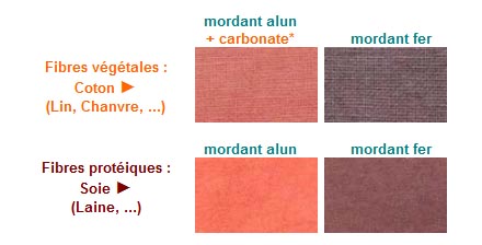 Il y a de nombreux colorants dans la plante, c'est l'alizarine qui donne les rouges (celle qui est précisément difficile à solubiliser et qu'on a rapidement synthétisé fin du XIXè siècle).