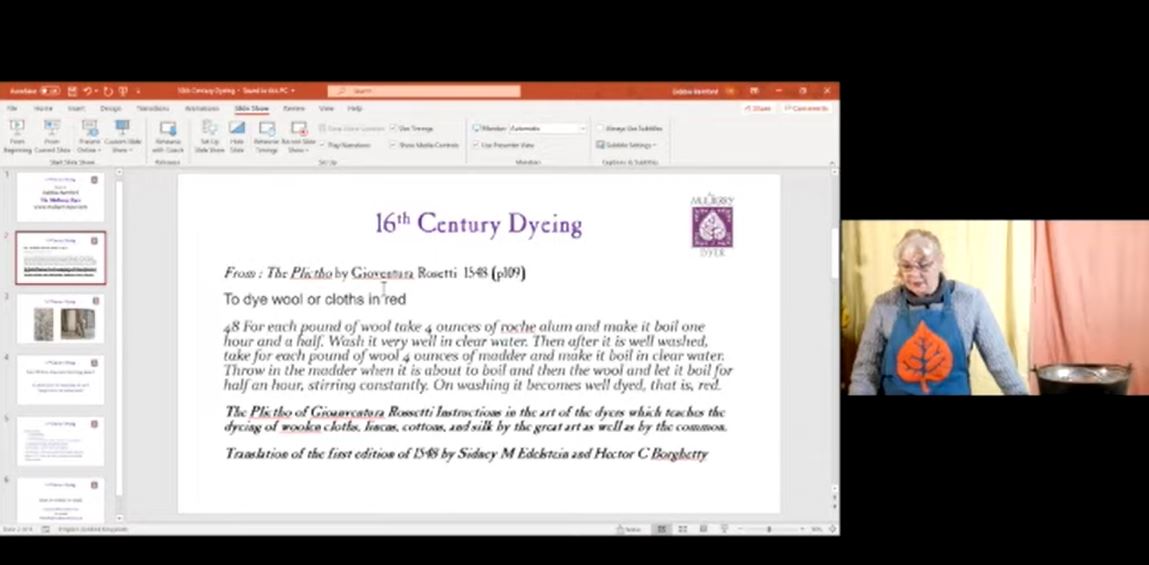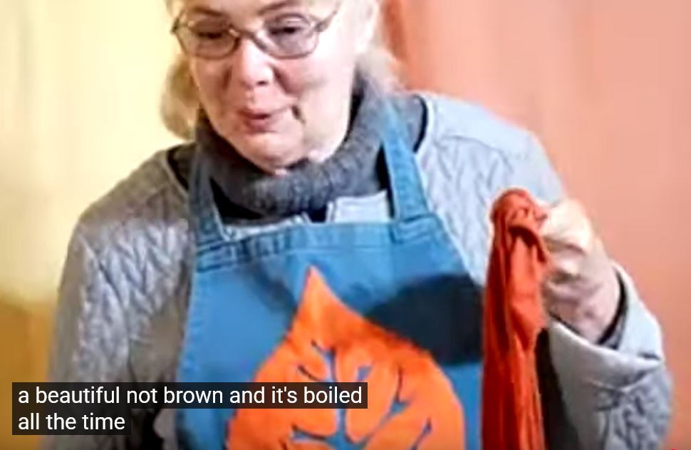 On sait qu'on peut faire bouillir la garance "cordifolia" (indienne, à feuilles en coeur), mais c'est principalement la garance tinctorium qui est vendue par chez nous. Or, celle-ci ne peut pas bouillir, nous dit-on. Dans une vidéo sur YT, Debbie Bramford, teinturière en reconstitution historique (the Mulberry Dyer), montre comment elle a produit un beau rouge en faisant bouillir la garance commune. Elle s’est inspirée d’une source Renaissance (« le » Plictho de Rossetti), selon laquelle il est important de déposer fibre et garance **quand l’eau bout** et de garder le bouillon pendant 1/2 heure.