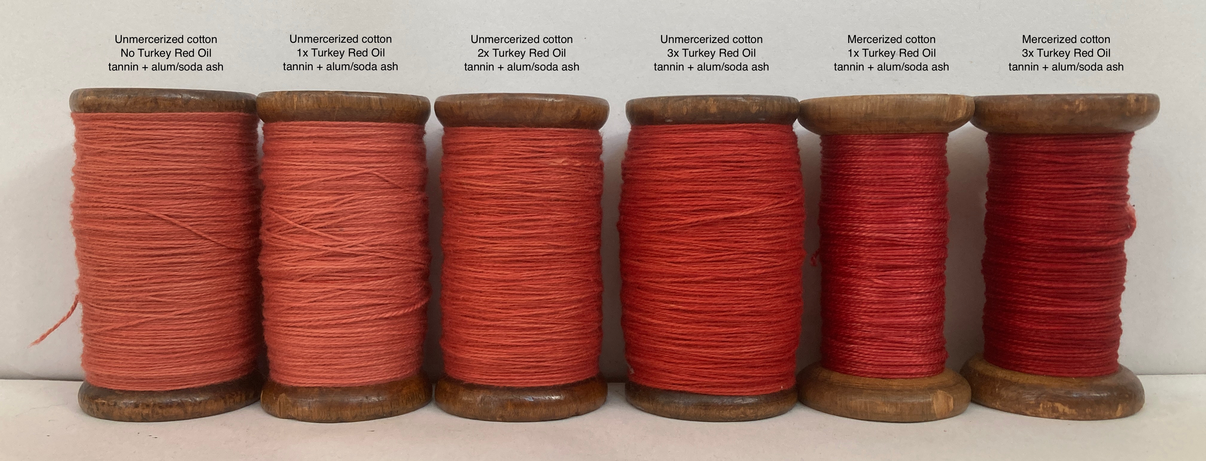 On voit en image 1 que le fil teint en 3 passages de rouge d'Andrinople est bien plus rouge, à 50% pdf pourtant.