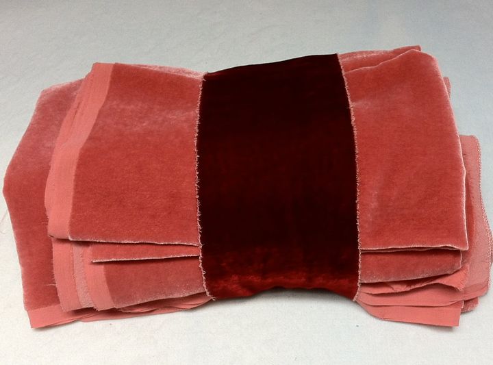 "La question m'a été posée: le procédé classique de mordançage de la soie à l'alun prenant un peu de temps, ne peut-on à la place utiliser l'acétate d'alumine. Voici une bonne occasion d'en faire la comparaison. 2 morceaux de soie d'à peu près 10g sont mordancés l'un par trempage durant 18h ans une solution de 2g de sulfate d'alumine diluée dans 200mlm d'eau à température ambiante, et l'autre par trempage rapide dans une solution d'acétate d'alumine fait en diluant 2g de sulfate d'alumine et 1g de carbonate de socdum dans 50ml de vinaigre. On sèche et on trempe à nouveau à 2 reprises, de façon à ce que toute la solution soit utilisée.Après rinçage, chacun des deux échantillons est rincé , et coupé en quatre de façon à teindre un échantillon de chacune des deux préparations, dans un même bain de teinture (Garance à feuilles en coeur, 100%; réséda des teinturiers 100%; cochenille 20%; Campêche 100%.