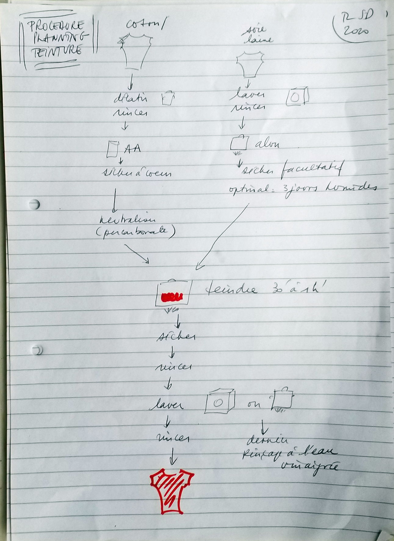 J'ai retrouvé des procédures chez Karin Delaunay qui, pour amadouer coton & Cie, propose pas mal de variantes dans son chapitre "garance". Procurez-vous son livre, qui est un envol d’enthousiasme tant les photos sont belles. Ceci n’est qu’un extrait de mon carnet de notes. L'acétatalunage à la Garcia fait le même effet que ces multiples variantes; et c'est tout de même plus simple, moins cher, plus rapide et aussi efficace.