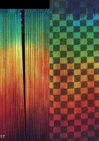 On peut aussi ne garder ces multicouleurs que pour des parties très limitées de la chaine, le restant étant uni. On ourdira alors une toute petite partie de chaîne (une "phrase") à teindre par zones, le reste étant teint classiquement. On peut pratiquer sur écheveau, mais ça demande une petite théorisation.