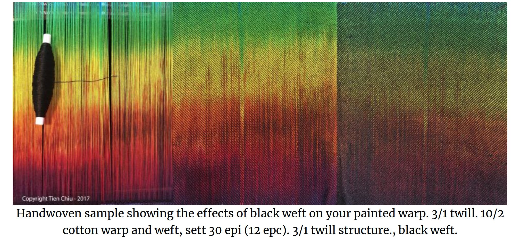 Un conseil de la même Tien Chu, spécialiste coloriste, dans son article Weaving with handpainted yarns – how to get gorgeous work, pour que les couleurs gardent un ton vif.
