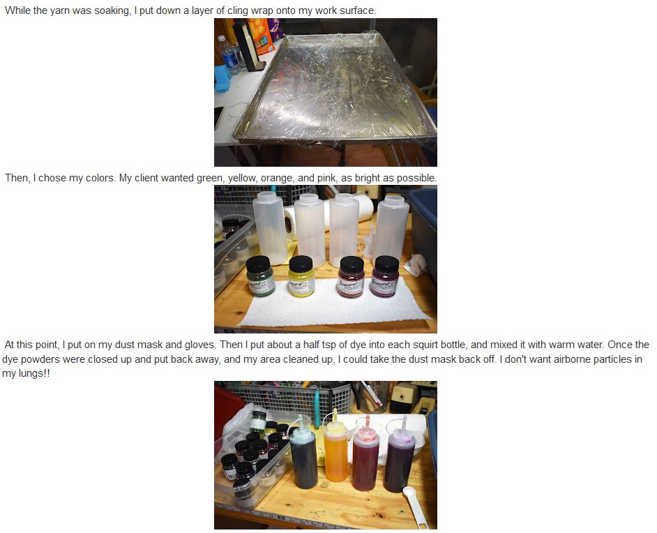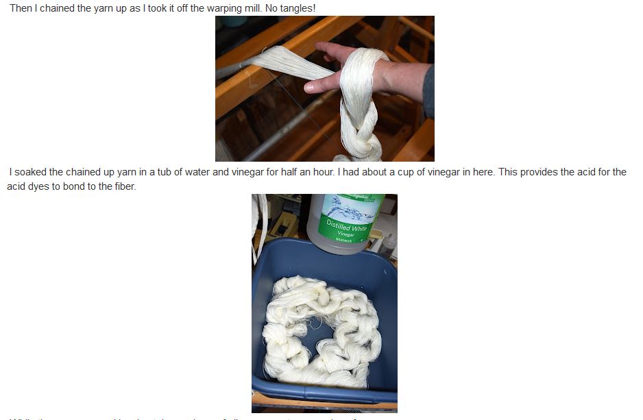 LAINES SOIES - APLATS DE COULEURS. Si je dois résumer la procédure qu'utilisent les teinturiers de hobby en classique pour les chaines peintes ("painted warps") à base de teintures acides pour laines et soies, voici la synthèse - en italique le changement pour les praticiens en teintures naturelles: