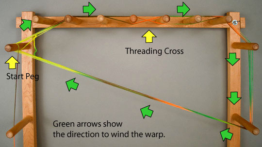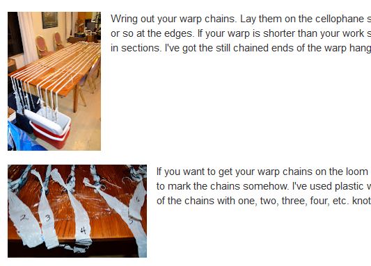La même technique à peu près, mais cette fois-ci en anglais, à faire traduire par robot, une démonstration en image chez Tangibledaydreams. On verra qu'on peut se débrouiller avec un plan de travail bien plus court que la chaîne (chez moi elle fait souvent 3 à 4 m, chez certains tisserands 12m et plus!).