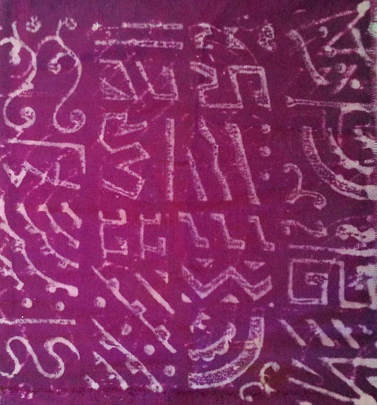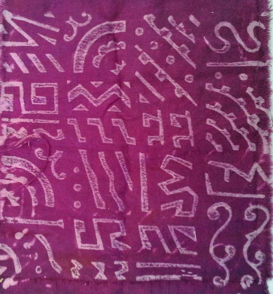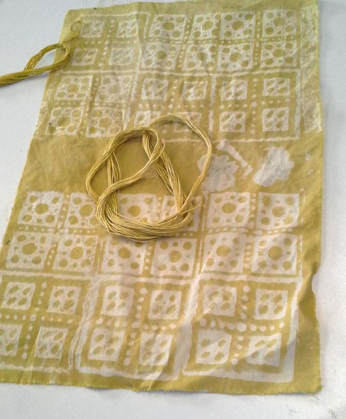 Il s'agit ici de retirer des parties de gels de mordants, afin que le fond reste blanc lorsqu'on baigne le tissu dans le bain de teinture.