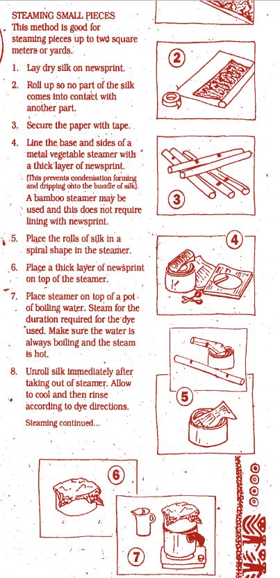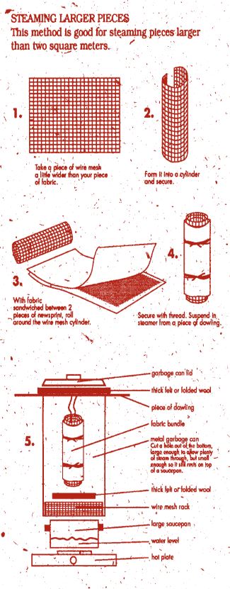 Vaporiser. J'en ai trouvé un tuto en image chez Maiwa, aussi grand amateur de teintures naturelles, dont j'ai extrait ces images - voir l'original sur leur page d'instructions: