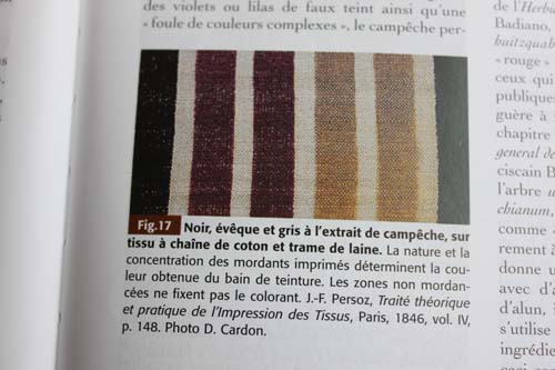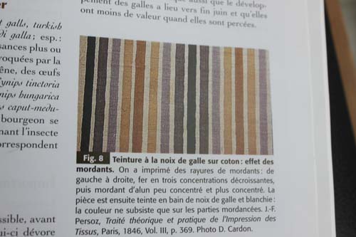 Le merveilleux livre "bible" de Dominique Cardon regorge d'illustrations, en plus de la documentation puissante. C'est un incontournable pour tout teinturier qui se prend au jeu. Quelques exemples de jeux de mordants en extraits trouvés sur le net (je n'ai que la version anglaise de ce livre).