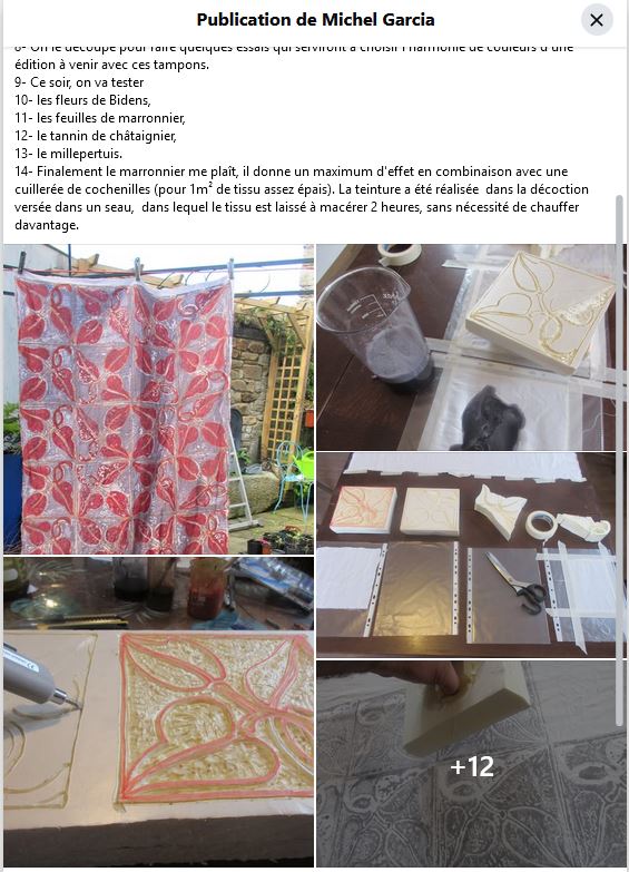 Grâce aux partages chez Maiwa ou de Michel Garcia en stage et en DVD, dont on peut lire quelques exemples sur son compte facebook aussi, nous avons donc à disposition de multiples techniques pour les teintures naturelles: