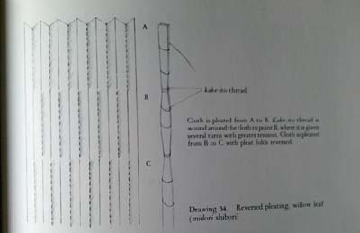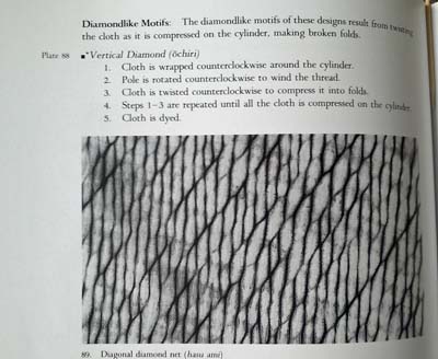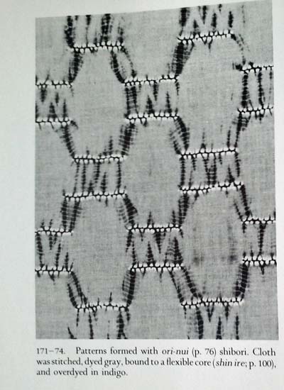 Ma référence à l'atelier: le livre de Yoshiko Wada "Shibori: The Inventive Art of Japanese Shaped Resist Dyeing", une vraie bible, incontournable. Tous les lecteurs n'ont peut être pas investi un tel montant. Je montrerai les exemples avec des photos d'écran prises sur le web. Je partage aussi quelques scans ci-dessous