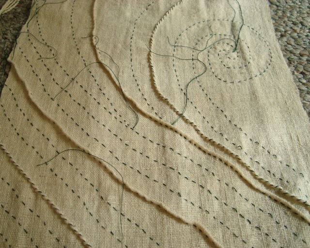 Les coutures du tissu selon motifs, alias le "nui shibori" en japonais, se dit "stitched shibori" en anglais. Les puristes cousent à la main, les aventurières à la machine. Très utilisé par les Teinturières de Bamako