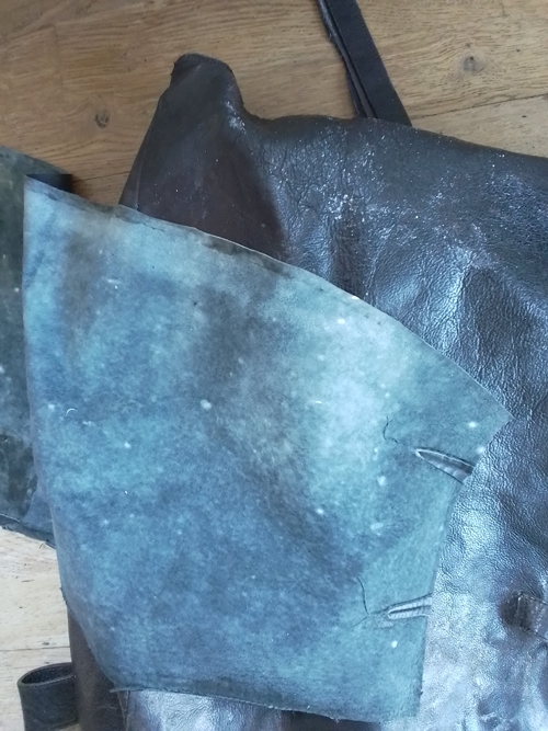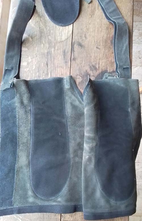 J'ai démonté des jambières en daim pour en faire des sacs avec poches appliquées, le projet est le suivant: il faudra nettoyer, sans teindre. Je ne souhaite pas faire disparaître le souvenir de cavalier, ça me facilitera le travail. Je vais tenter la couture machine domestique, avec une bonne aiguille en cuir, une pression "tissu épais" et un rythme lent, pour pouvoir contrôler.