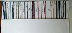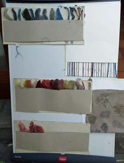Il convient aussi de tester les effets couleur selon les fibres: coton ordinaire ou coton mercerisé; laine de mouton ou de mohair, laine vierge ou superwash, laine de chamelon (beige) ou de gotland (grise). Que de tests! Que de variétés dans les tons!